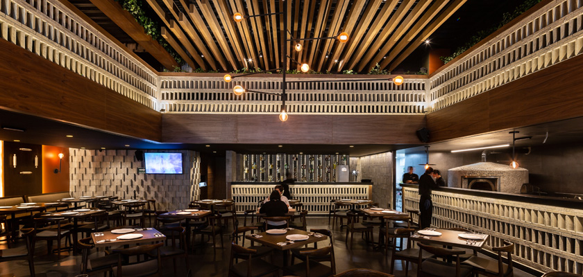 Su punto de partida fue emplear un elemento tradicional y económico que se convirtiera en el eje rector y estableciera el ritmo del lugar, así que se optó por un tabique beige que se repite de forma orgánica y define elementos arquitectónicos específicos como celosías, muros, escaleras y barras que generan armonía y textura. La paleta de colores también se seleccionó de acuerdo a este, por lo que las tonalidades tierra y madera fueron el complemento perfecto.
