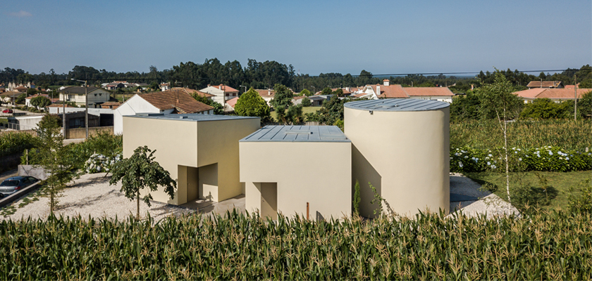 Ubicado en la ciudad de Ovar, en el distrito portugués de Arada, se encuentra este proyecto de oficinas, diseño a cargo del despacho del arquitecto Nelson Resende. El concepto se basa en la articulación de tres volúmenes simples: un cubo, un prisma rectangular y un cilindro. Emplazados en medio de un entorno campestre, donde destaca una plantación de maíz.
