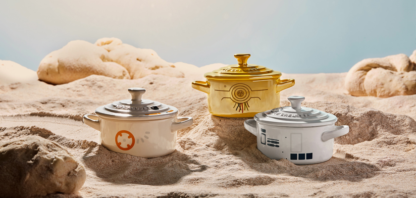 Conviértete en un verdadero Jedi gastronómico con la nueva colección de utensilios para cocina de edición limitada StarWars de Le Creuset. Desde una galaxia muy muy lejana llegan mini ollas de R2-D2, C3PO y BB-8, una cacerola de Darth Vader, posa calientes de silicón figurativas a las icónicas naves Death Star y Millennium Falcon, un accesorio para cocción de pies del divertido personaje Porg y una asadera que pareciera haber rostizado a Han Solo. Comienza tus clases de cocina y que la fuerza te acompañe.