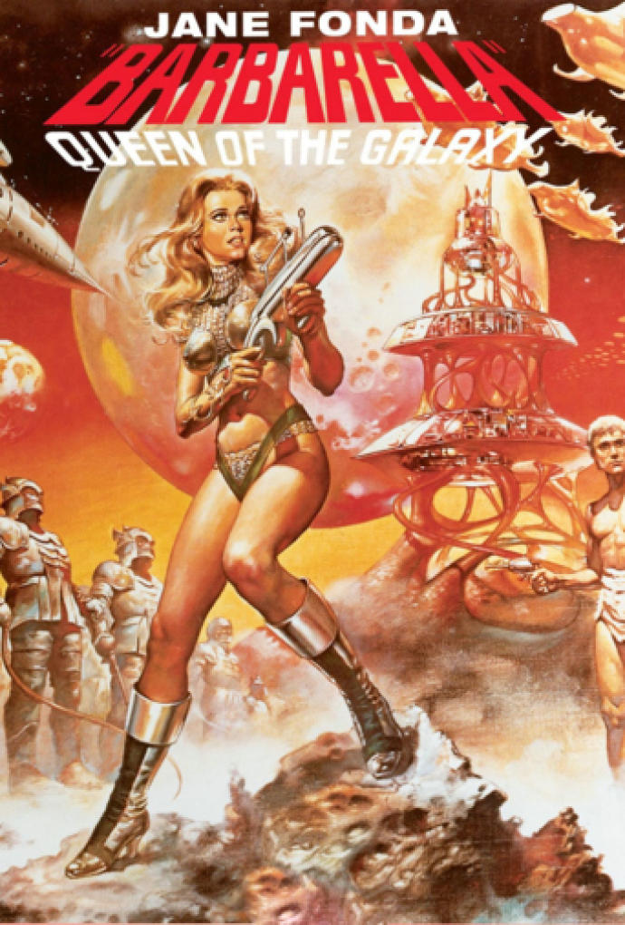 En pleno momento para la estética del space age, la heroína de esta cinta, Jane Fonda, aparece en las escenas enfundada en varios atuendos representativos de esa tendencia. Ha sido inspiración para la industria de la moda desde aquella época.