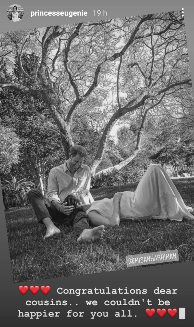 "Felicidades, queridos primos", escribió. "No podríamos estar más felices por ustedes". Además, compartió el retrato con el que la pareja dio la noticia en San Valentín sobre su esperado embarazo.