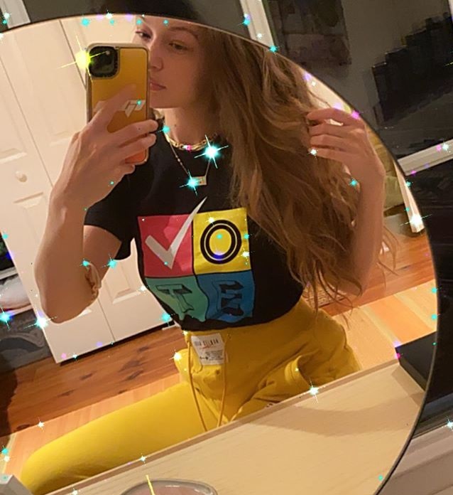 Semanas después de dar a luz a su primera hija con Zayn Malik en septiembre, la modelo Gigi Hadid utilizó su cuenta de Instagram para transmitir un mensaje importante. Con su primera fotografía de cuerpo completo desde el anuncio de su embarazo, el angelito de "Victoria's Secret" presumió una playera con las palabras "Vota".