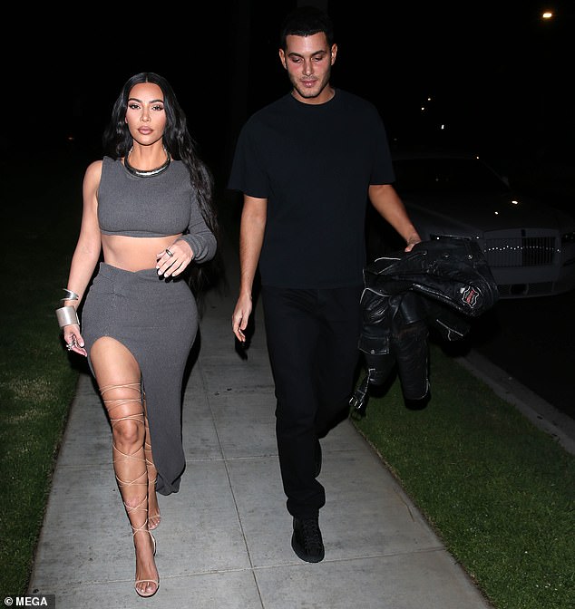 El pasado sábado 22 de mayo, Kim se aseguró de llamar la atención al llegar a la fiesta de cumpleaños del multimillonario, Jamie Reuben en Beverly Hills y lo logró acompañada de su outfit conformado por un crop top y falda color gris, además de zapatillas beige y accesorios plateados. Se le vio llegando con Fai Khadra, un modelo, amigo, principalmente de las Kylie y Kendall.