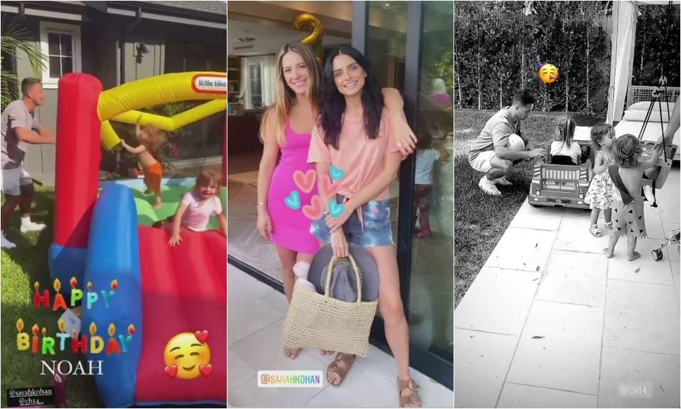 Sin embargo, más adelante compartió más videos y fotografías, tanto con Sarah, como con el Chicharito durante el festejo. En uno de ellos, se puede ver al futbolista jugando con Noah en un inflable, así como platicando con la pequeña de Aislinn.